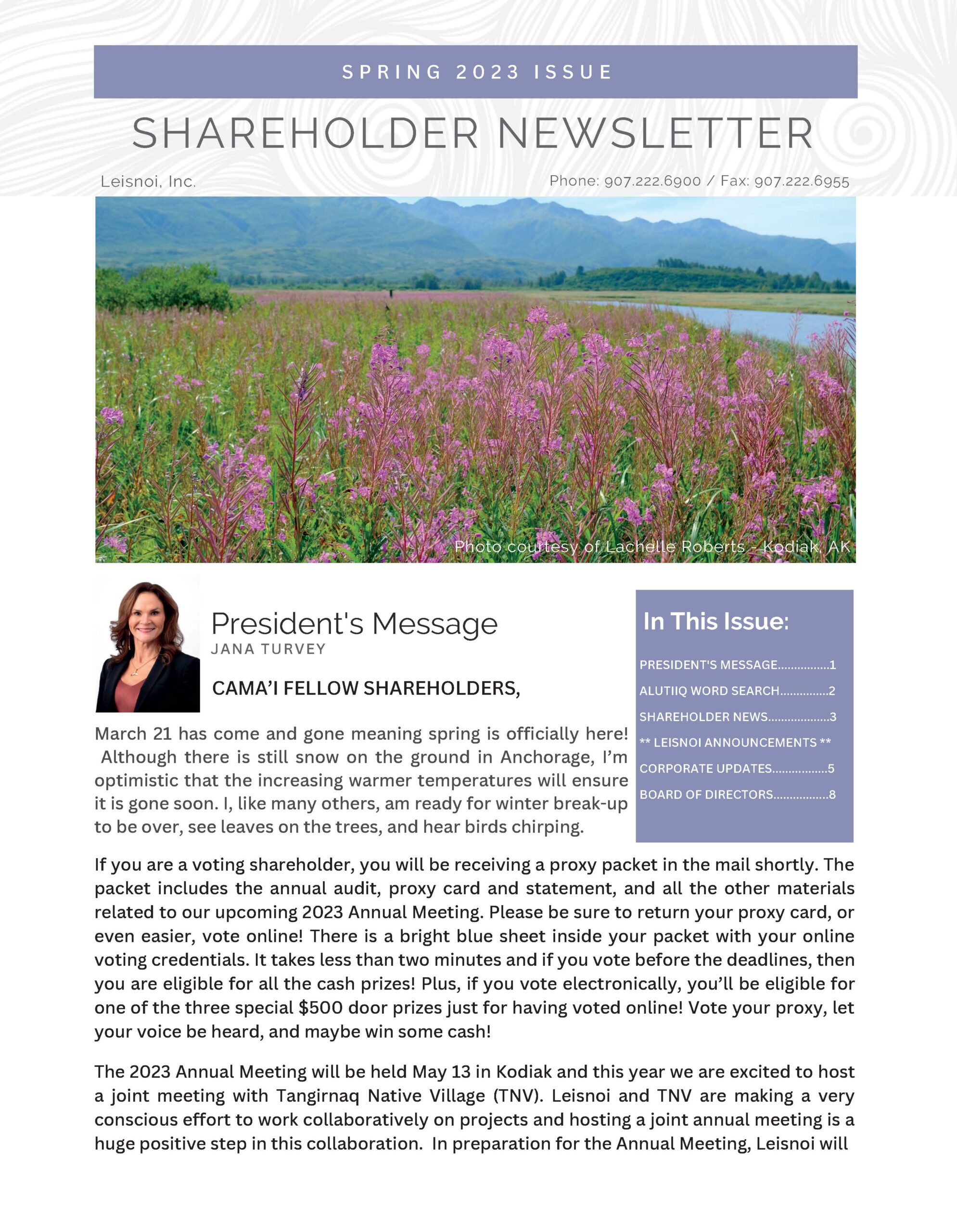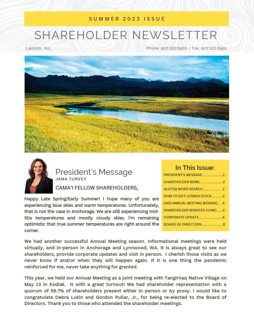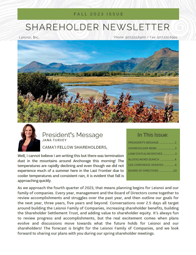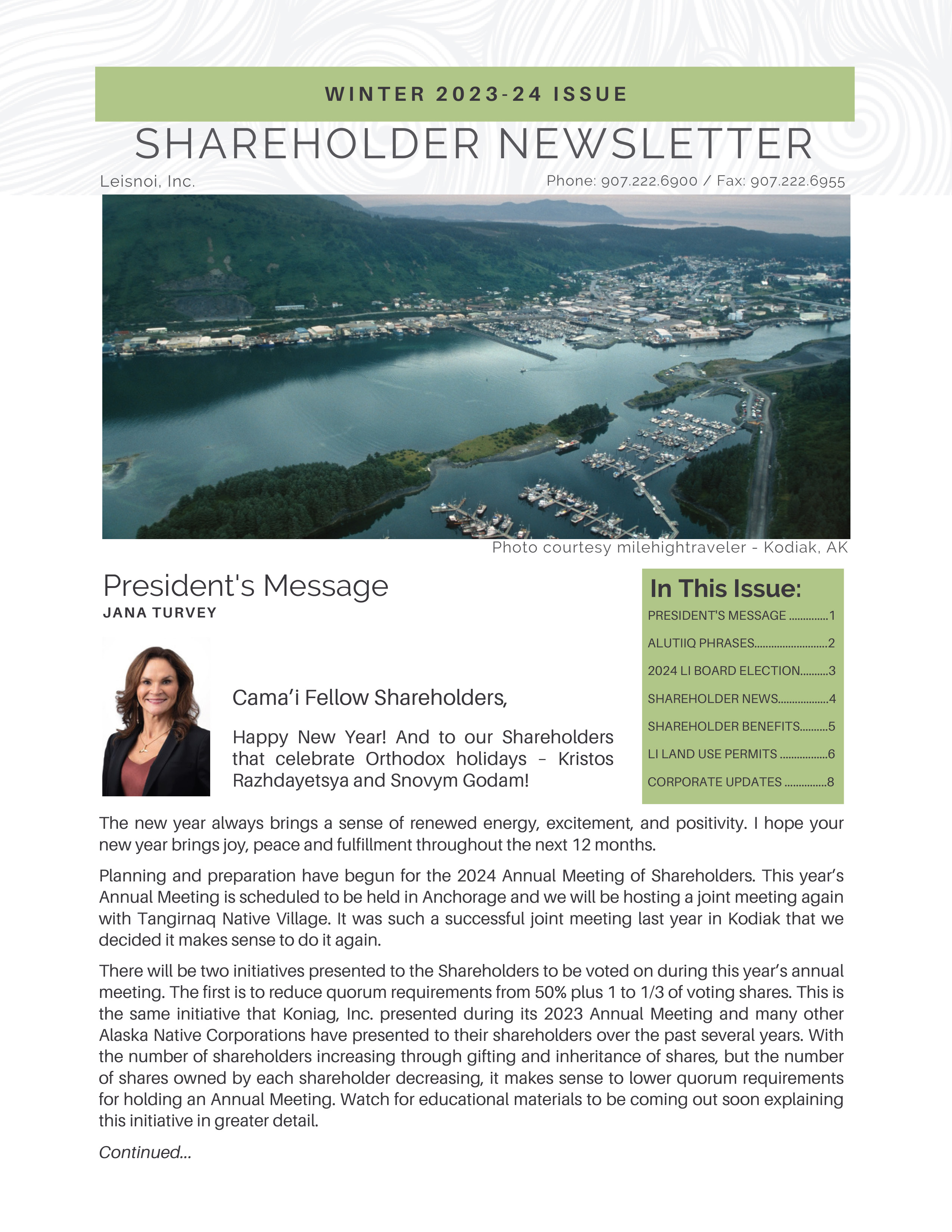 Leisnoi Shareholder Newsletter - Winter 2023-2024